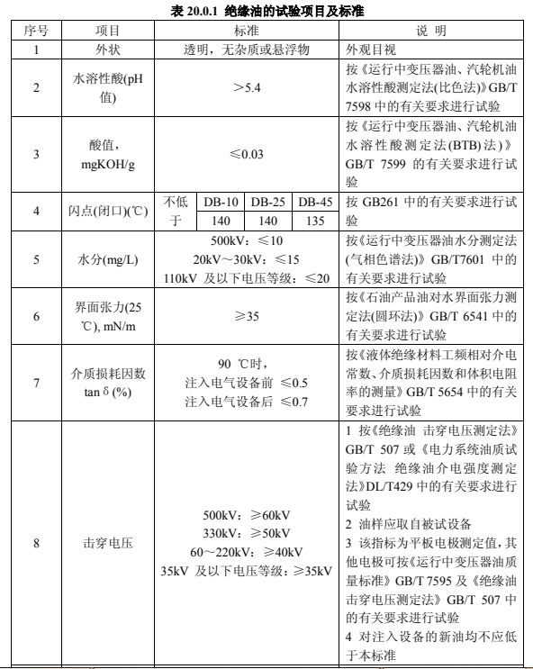 絕緣油的試驗(yàn),應(yīng)符合下列規(guī)定: