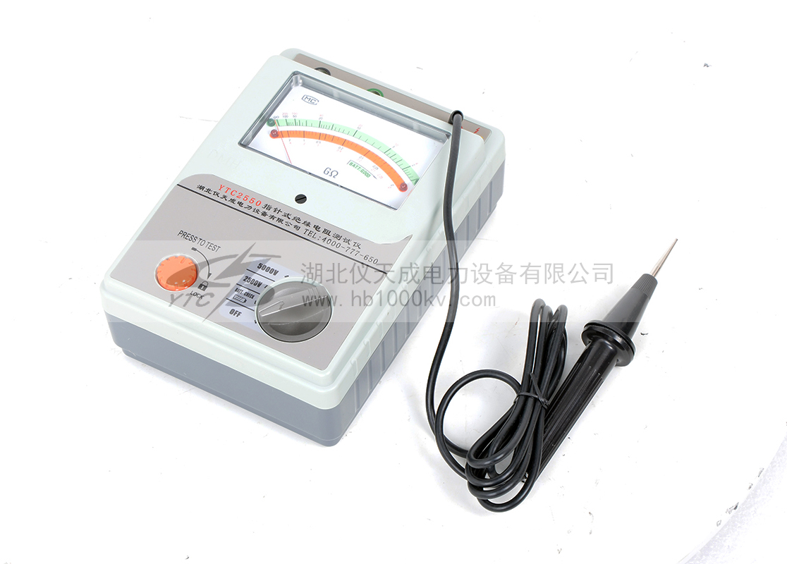 YTC25系列指針式絕緣電阻測試儀的絕緣測試對于YTC2533在500V可測20GΩ, 在1000V可測40GΩ, 在2500V可測100GΩ;對于YTC2550型在2500V可測100GΩ, 在5000V可測200GΩ;對于YTC2565型在5000V可測200GΩ, 在10000V可測400GΩ;。
